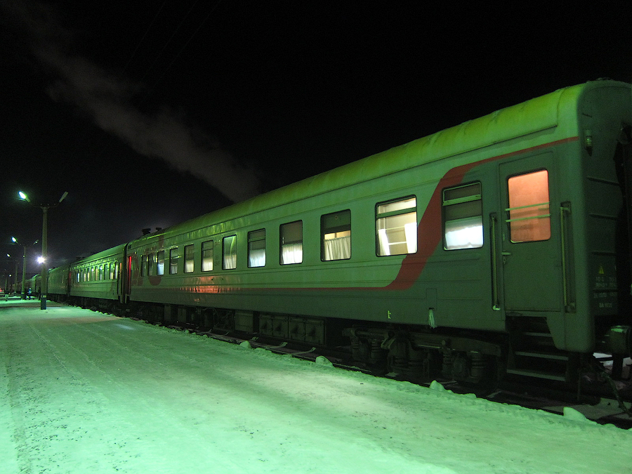 Состояние вагона было вполне приличным для дополнительного поезда, единственный негативный момент связан с не очень комфортной температурой: за бортом было за -20, в вагоне также было ощутимо холодно даже с учётом активно подбрасываемого в топку уголька, поэтому укрывание одеялами пришлось очень кстати: