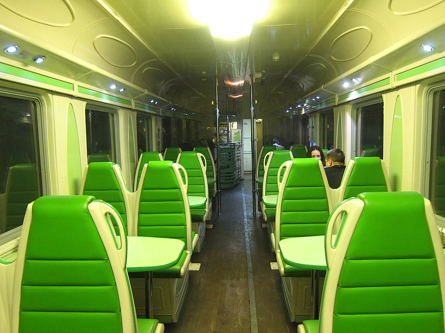 Вагон оказался "ранней Тверью" 61-817. В вагоне имелись шторки на окнах, скатерти на столиках, коврики только в купе, в коридоре ковра не было.
