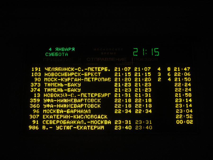В Екатеринбург прибыли по графику: к вагону подвалило несколько новых пассажиров. Никак не могу понять логику свердловских деятелей, вешающих на табло парные номера одноимённого поезда отдельными строками...
