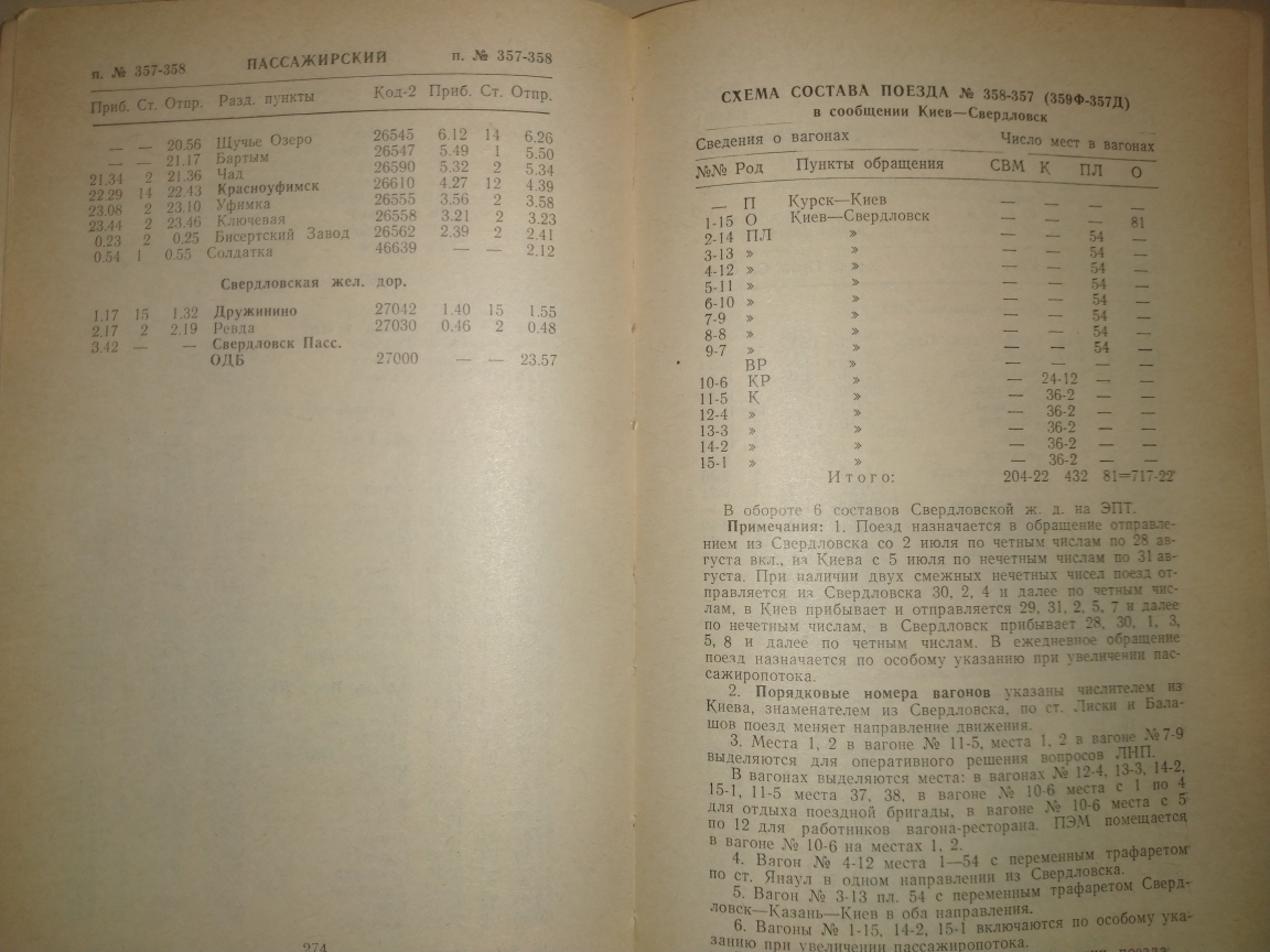 Ну вот. Гляжу на расписание 357/358 1991 года Киев-Свердловск и понимаю, что бардак начался не сейчас, не сегодня и не вчера. Пишут, что поезд менял направление по станции Балашов-пасс. Позвольте, но какое направление!? Если Балашов -пасс, он же Хопёр, открыли в 1986 году, но в расписаниях эта информация кочевала видимо аж до 1991 года ..!