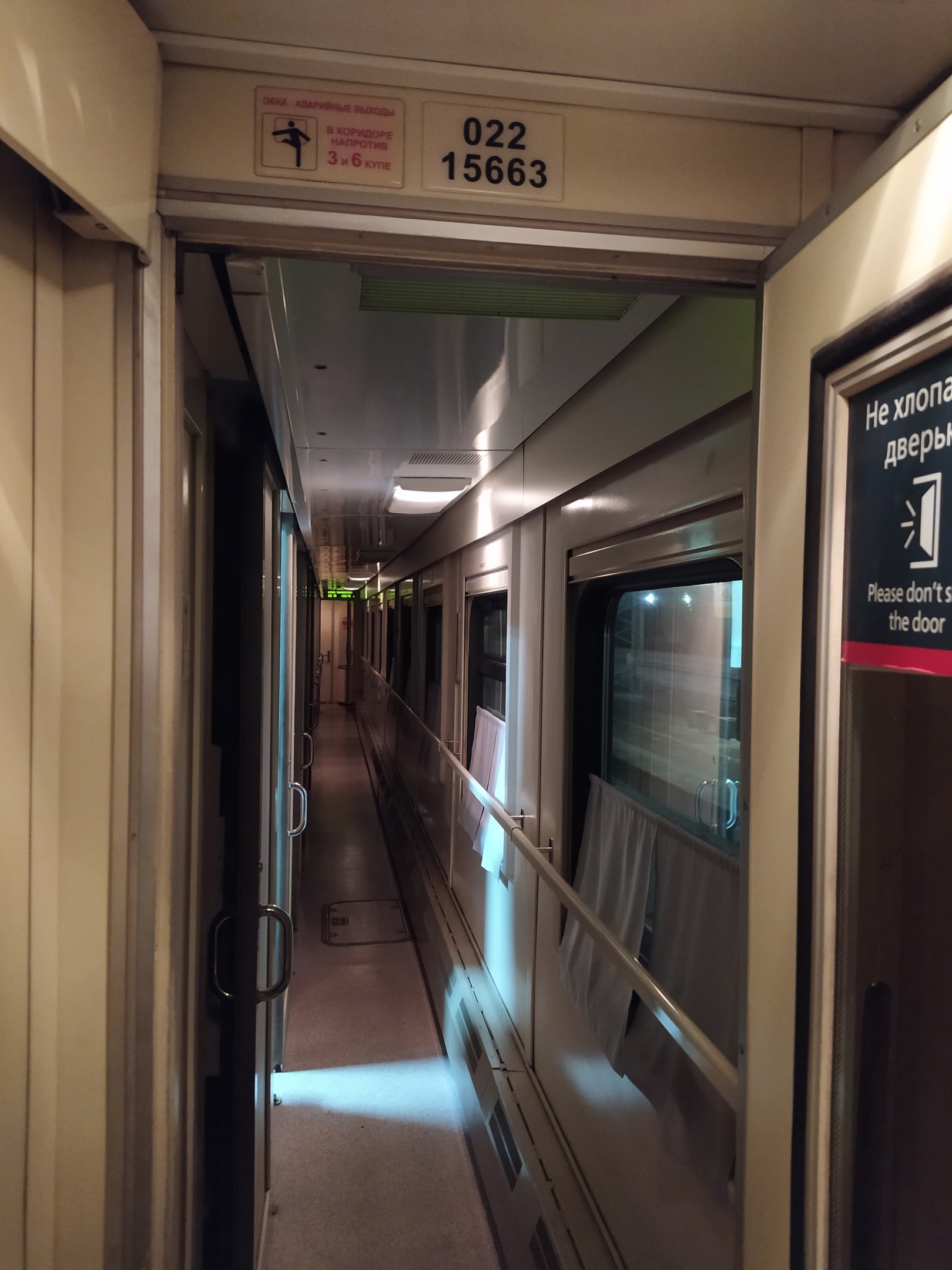 7-й вагон - традиционный штабной Немец после КВР. В целом - норм. В вагоне чисто, в туалетах всё необходимое имелось. Единственный жирный минус - дверь в одном из купе ну очень сильно "трясло". Техники или кто там отвечает за вагон - срочно почините дверь. Ладно у меня короткая поездка и я всю дорогу был в наушниках, а кому-то двое суток так ехать. :@=: