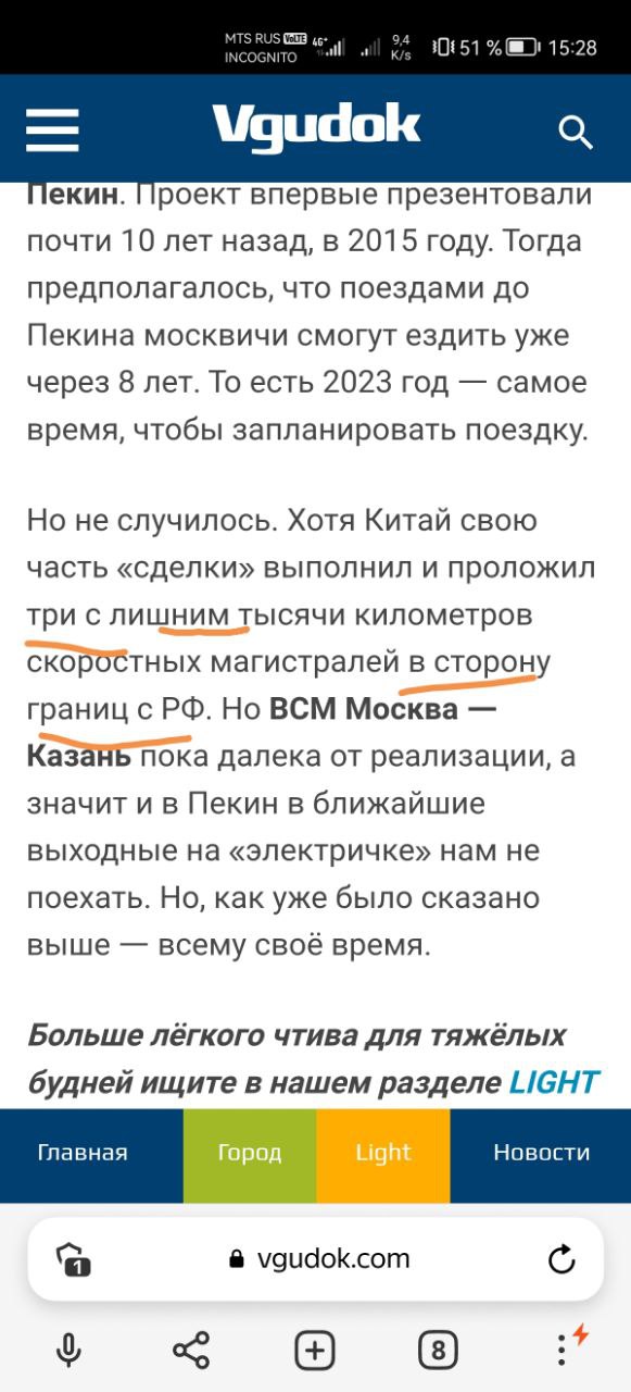 Джентельмены. Никаких ВСМ к границам никто не доводил. До Харбина и Урумчи идут обычные улучшенные и спрямленные на местности жд, как для условного Сапсана. Ну типа Нижний - Москва. Как и Россия, КНР исходит из внутренних потребностей и хотя-бы отдалённой в будущее рентабельности. И строят ВСМ исключительно в провинциях с населением более 100 млн, или плотностью, как в Шанхайской агломерации.