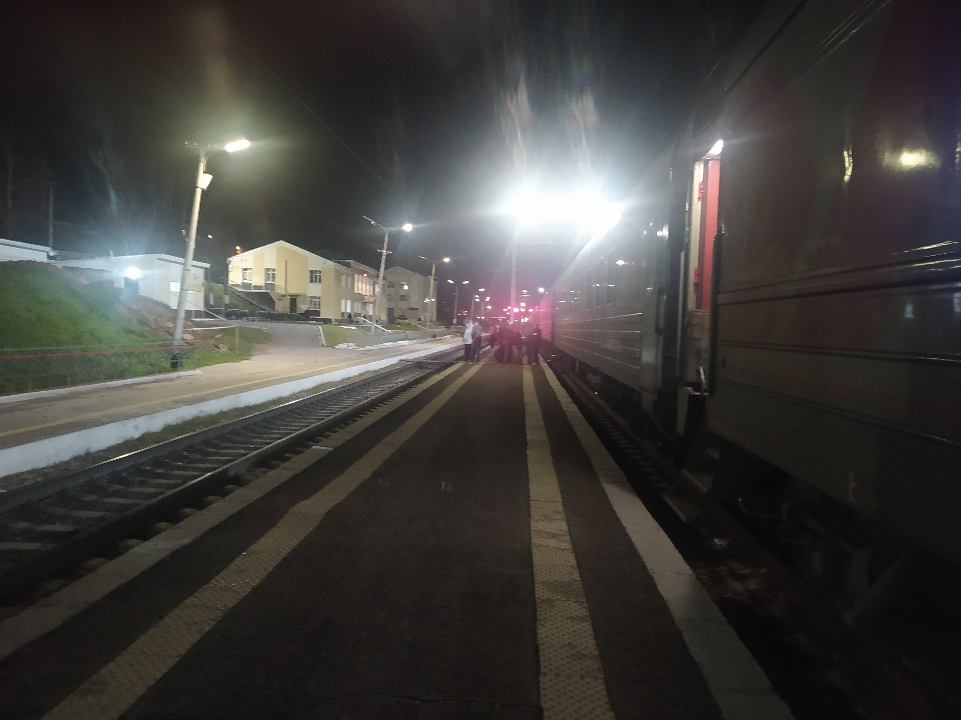 Вихоревка. Стоянка 60 минут. Куча народа ломанулась в магазины за территорию вокзала. Я так - вышел туда окольными путями мимо заборов, походил и обратно тем же путëм)). Зашёл в магаз со стороны перрона, взял пару мороженок и шоколадок. Здесь +11, совсем не холодно. Думал, что будет холоднее...