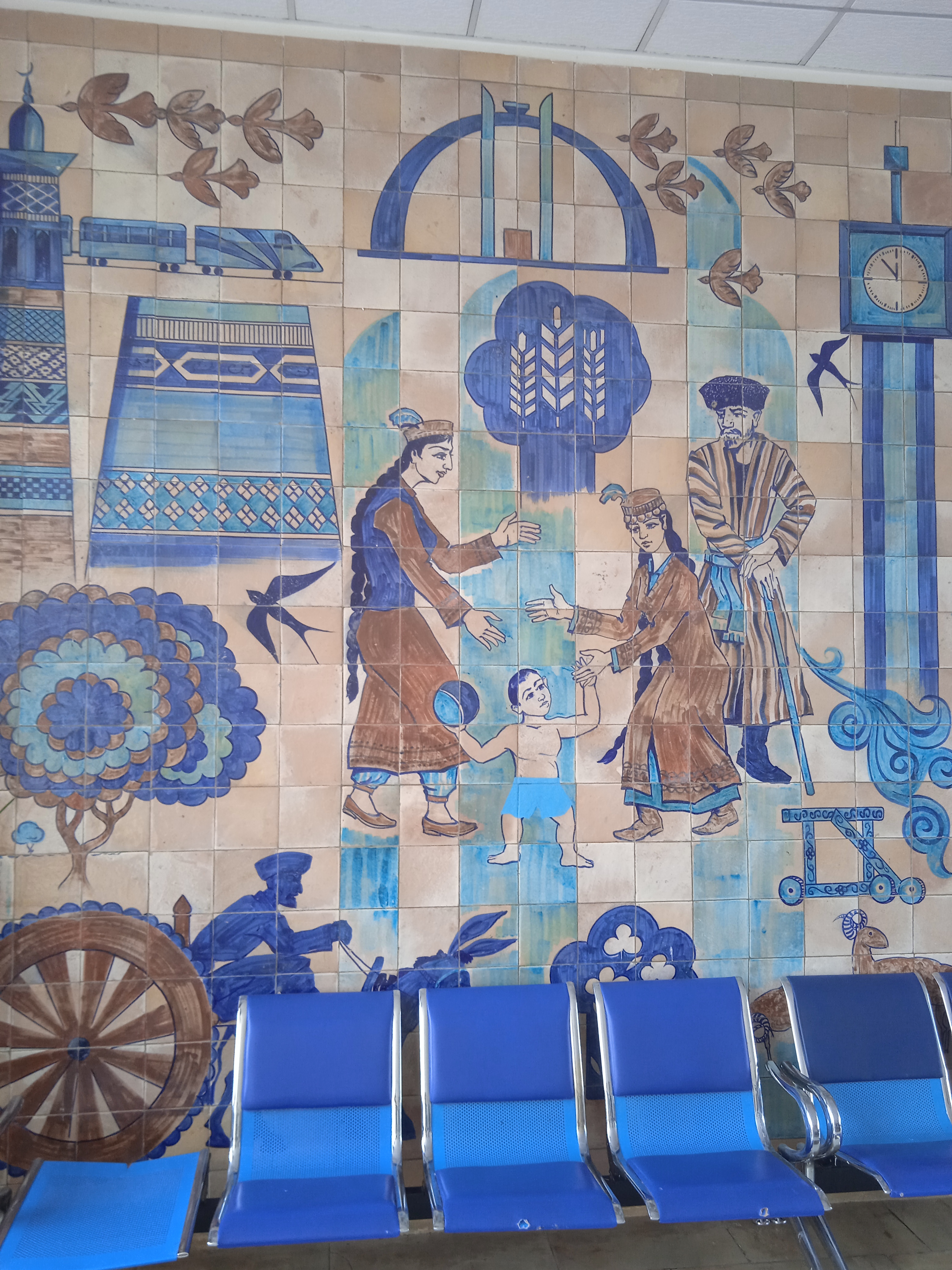 Из Хивы поехали на шаред такси до города Кошкупыр, оттуда до города Шават и уже оттуда на маршрутке до вокзала. Поезд стоял на солнцепеке, все окна боковушек плацкарта были открыты.