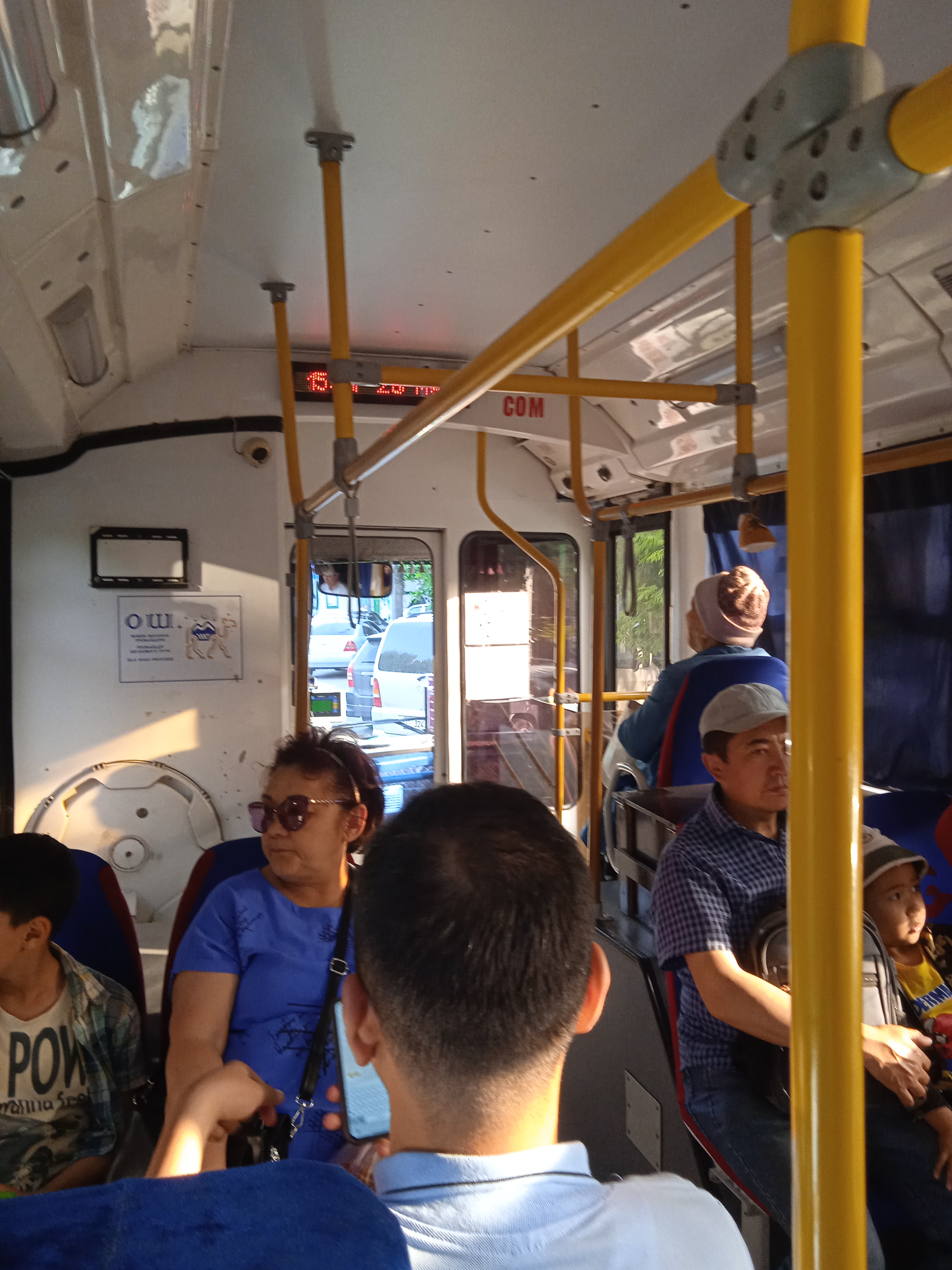 Мы утром поехали напрямую в шаред такси из Худжанда в Исфару. На границе нас завернули и я решил ехать в обход через Узбекистан. С границы вернулись в Исфару, далее едем в Канибадам и на границу в Патар. У жены или у меня забрали одну миграционку, вторая осталась. Доехали на Оке до Автовокзала в Коканде, оттуда на шаред до границы с Кыргызстаном, оттуда на такси в город ОШ к отелю под горой. Супруга пошла в ресторан, я пошел кататься на троллейбусе. Мелкие доллары в банках почти нигде не меняют, только от 100.