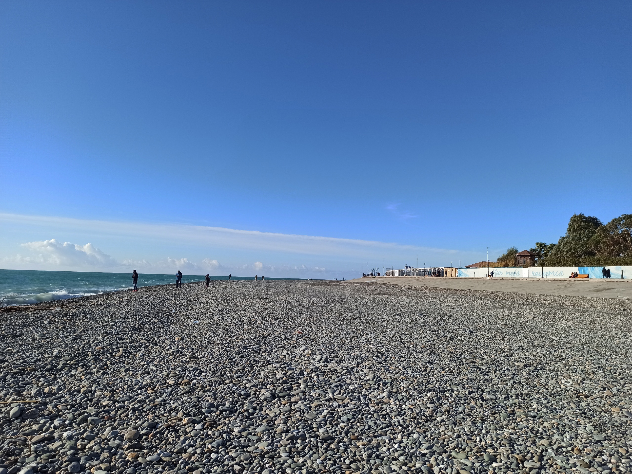 В наш день и градусов было много и солнце грело не по-северному, но пронзительный ветер создавал на пляже дискомфорт даже в зимних куртках, поэтому было решено плавно перебираться в Сочи, к месту старта круиза.