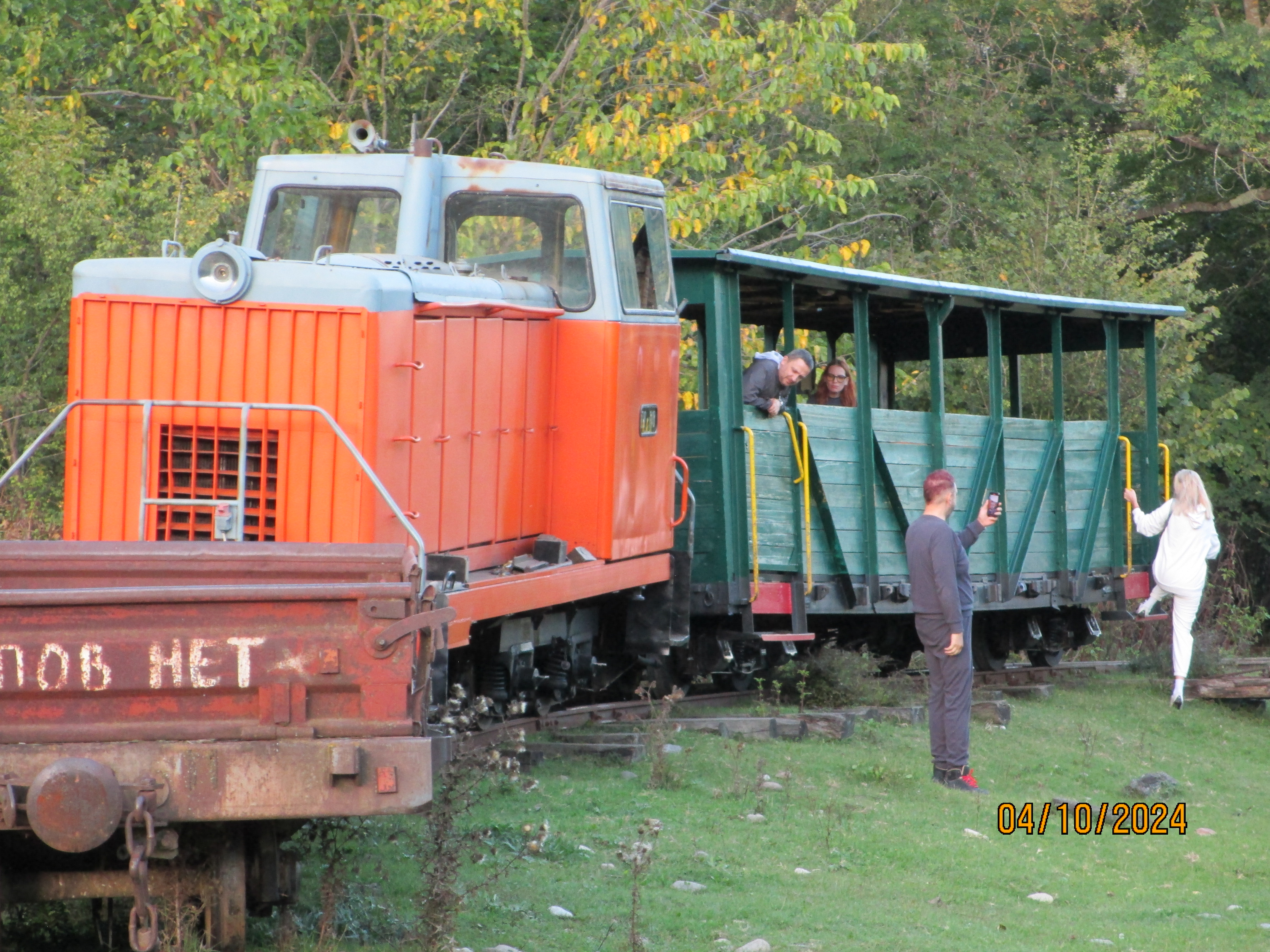 Сразу за мостом через Пшеху остановка, местная жительница Режета садится в вагон, отправляемся в сторону Десятого километра, солнышко уже освещает всё вокруг, заиграло осенними красками! Немного разговорился с женщиной пассажиром (Ирина Владимировна) – она меня узнала по прошлым поездкам, приглашала в гости. А её сын – Юрий, на скутере поедет в Черниговское, так дешевле, чем поездом, но дорога не для каждой легковушки. Примерно в 08:00 прибыли на Десятый километр, здесь садится ещё пассажир мужчина, женщина замёрзла и уходит в кабину тепловоза.