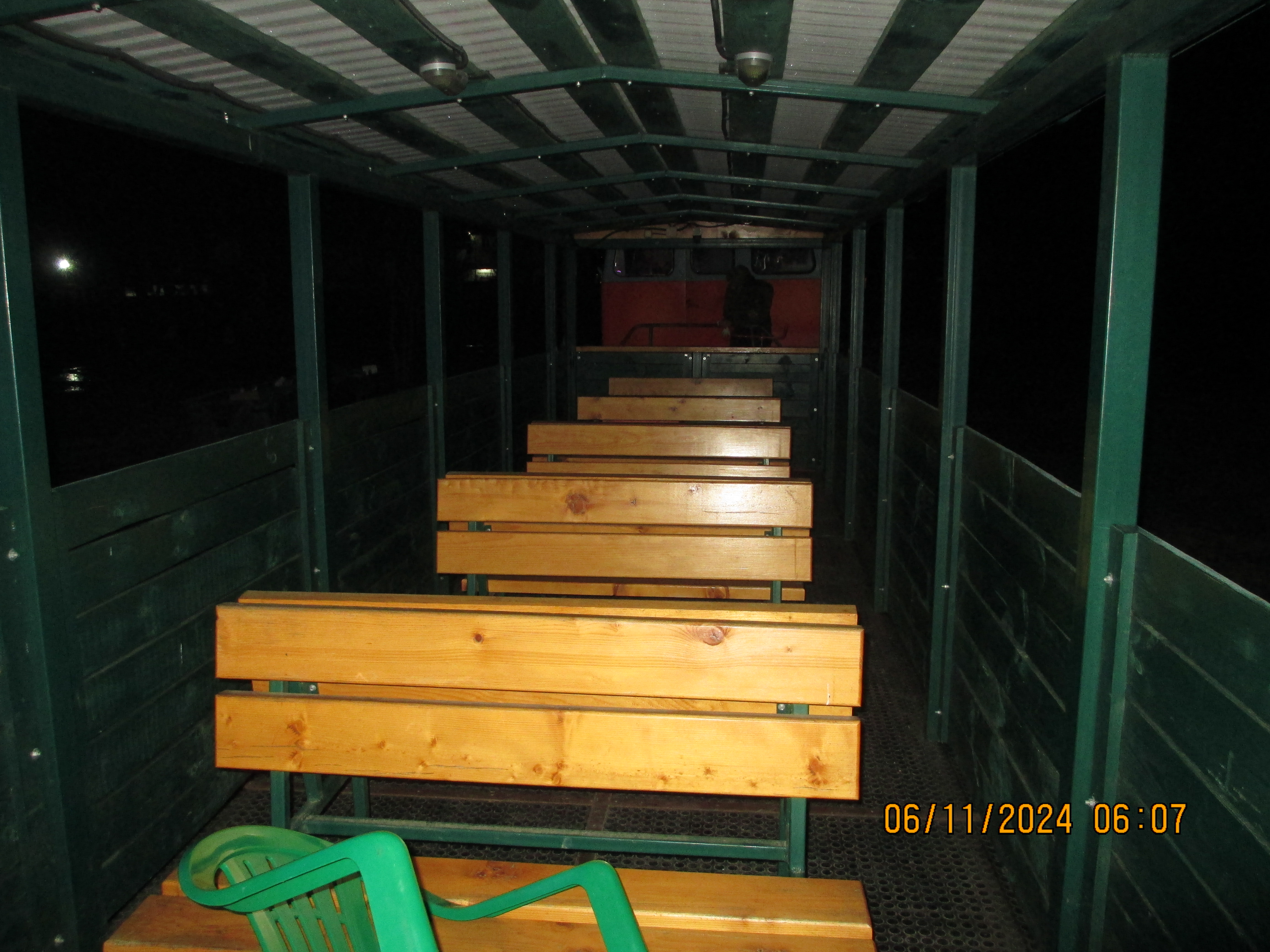 . Кроме меня и женщины пассажира, а также кондуктора и локомотивной бригады - никого больше не было. У состава уже стоит легковой автомобиль с будкой – начинается погрузка хлеба в ящики, хлебушек поедет с нами, и по пути в посёлках, его разгрузят. Кондуктор собрала за проезд, раздался гудок – мы отправились в 06:07. Женщина пассажир ушла в кабину тепловоза – замёрзла