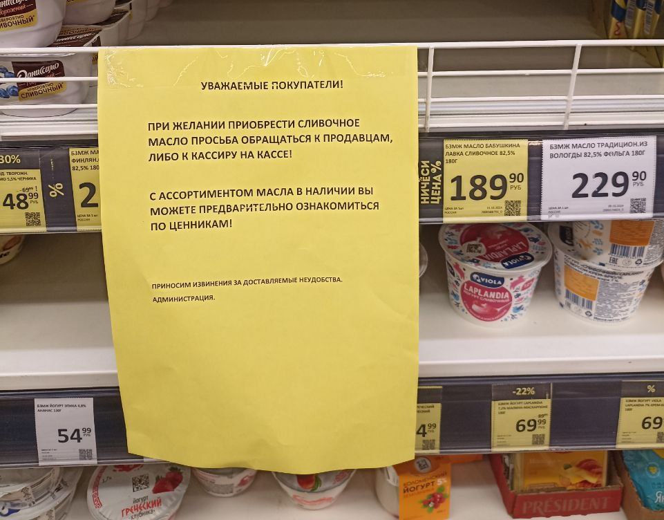 Я не знаю, Миша, чего там выискивают днем с огнем, но в Петербурге дефицит сливочного масла. Из этого даже отдельные сети стали его убирать с полок под замок. Захочешь купить, то надо идти к продавцам - там выдадут под роспись.LmV: Также, как и с содомитами. Когда они будут всюду, то будет уже поздно. Они образуются с порясающе-пугающей быстротой. Ну а не видеть эту проблему, значит не просто закрывать глаза, а быть слепым. Либо же: тайно поддерживать их.![]()