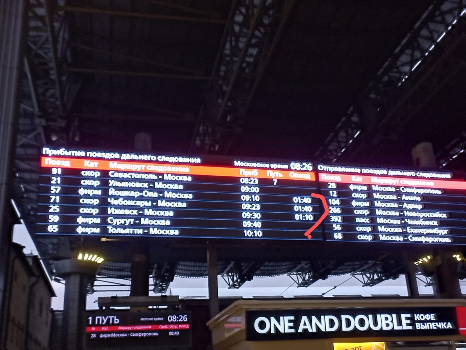 Поезд №147 Казань — Москва отстает на 2 часа, №2 Москва — Казань прибудет позже на 1 час 16 минут, №148 Москва — Казань — на 1 час, №378 Казань — Новый Уренгой опоздает на 1 час 15 минут.