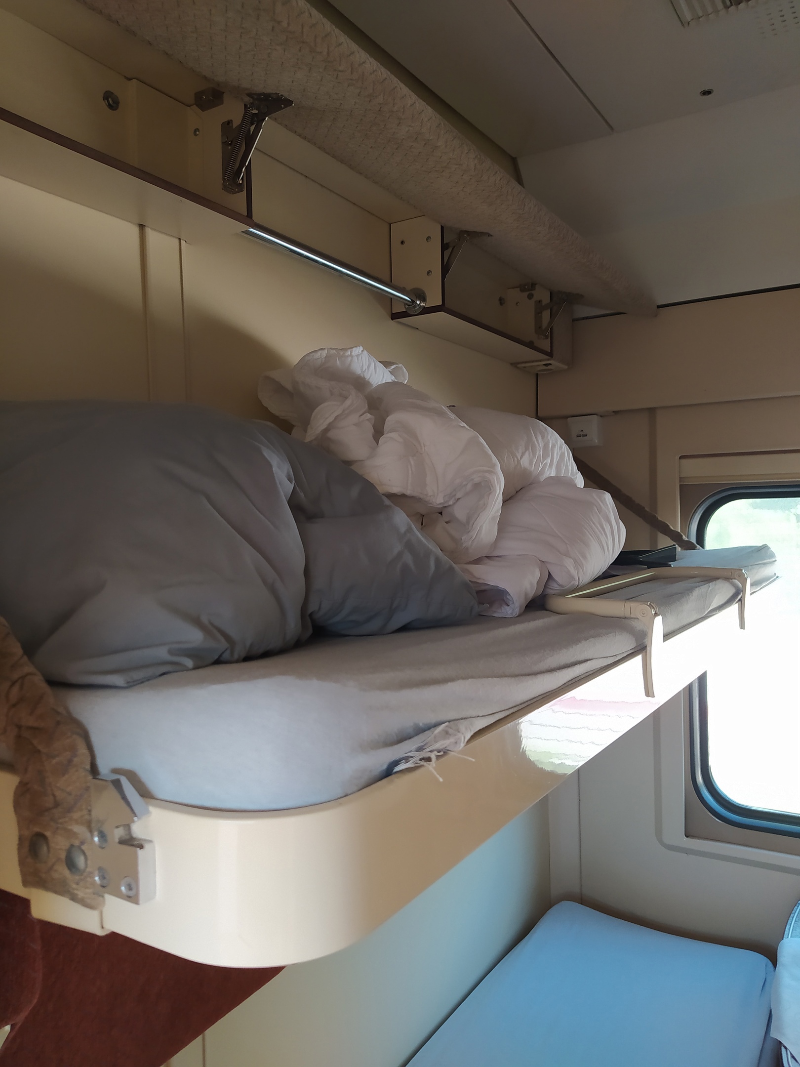 1) грязное постельное бельё. Я лёг спать поздно (около 3-х ночи, где-то после Калуги), не стал никого будить и спал без белья.