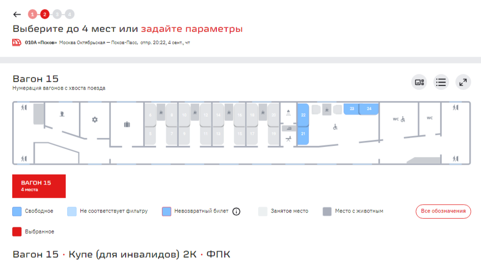 Там двухместное купе, рассчитанное на человека с ограниченными возможностями и сопровождающего. И да, при покупке хотя бы одного билета, продажа в это купе закрывается.Алексей1989: Уже как 5 лет существует четырехместное спецкупе. И сейчас в нем могут ехать до 3-х сопровождающих, например, его может выкупить вся семья.