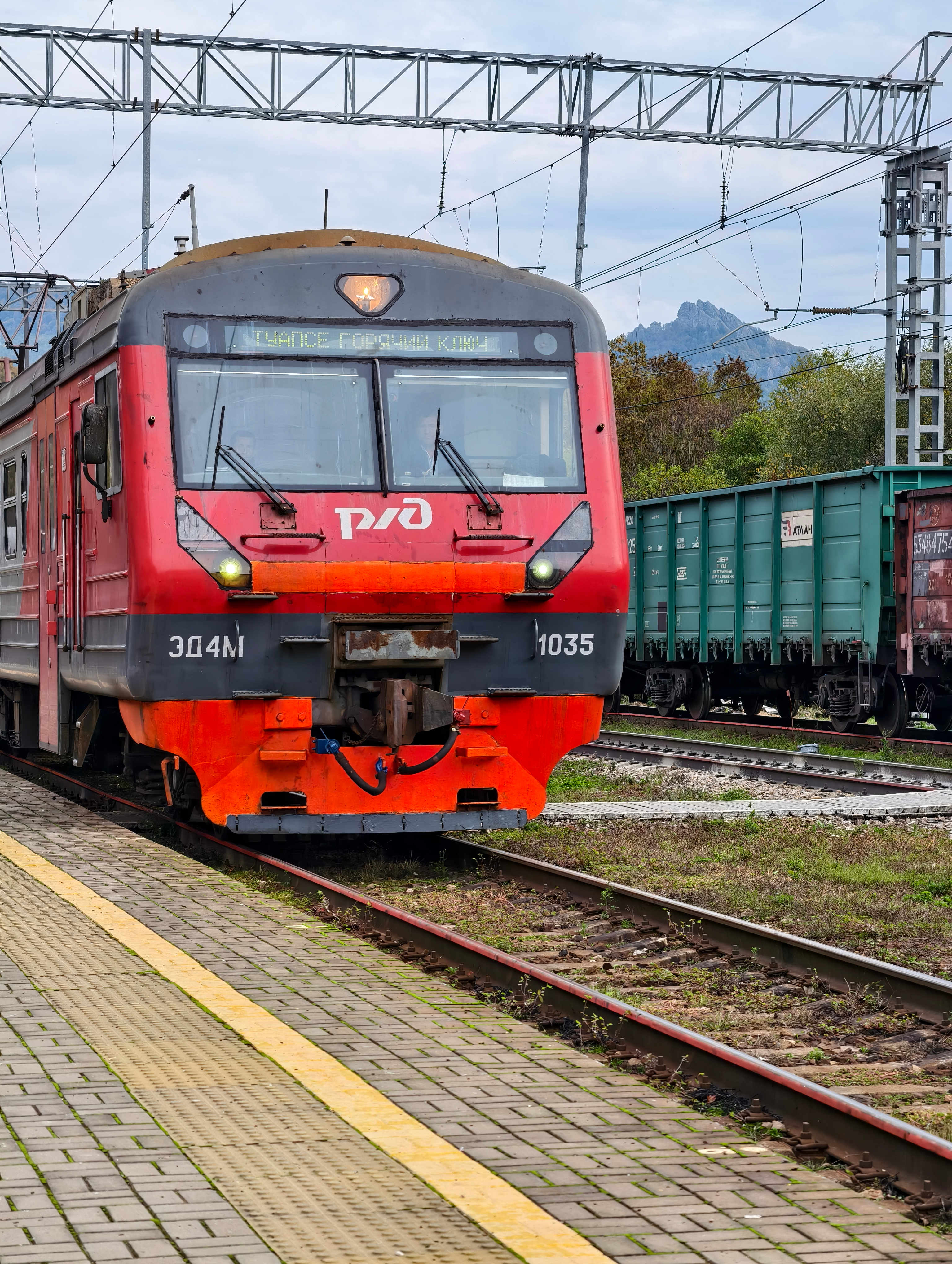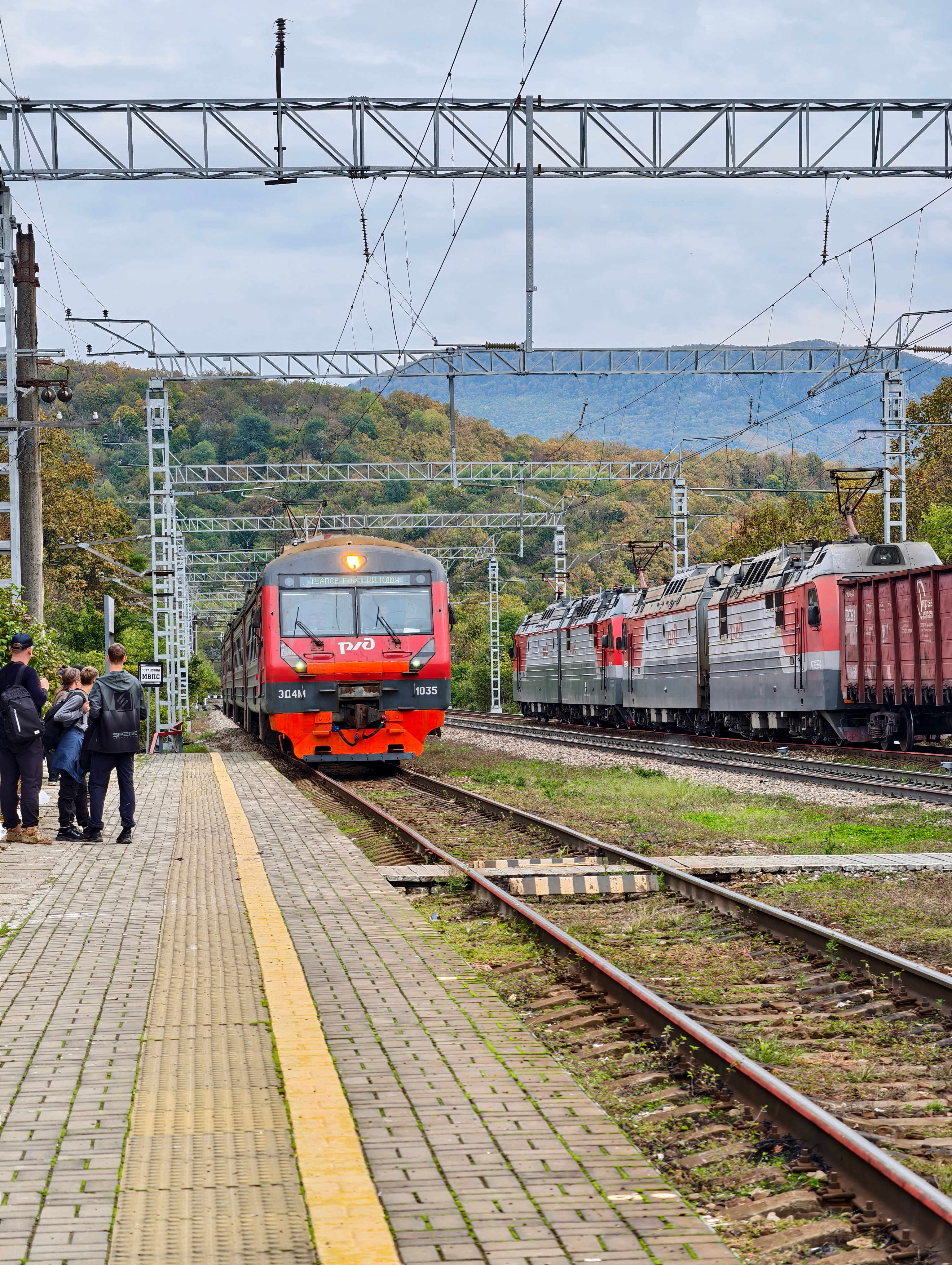 Из Краснодара выехали в 09:15, в Горячий Ключ приехали в 10:20, в окрестностях станции Саратовская видели ласточку Анапа – Сочи (Аэропорт), шла 100 км/ч, но это уже было почти перед Горячим. На привокзальной площади и самой станции идёт ремонт, паркуемся немного в стороне от жд вокзала. На первый путь только что прибыла электричка из Туапсе, на ней мы и поедем в Чилипси. Такой вариант (с электричкой) позволяет сэкономить минимум 2 часа только в одну сторону, машиной надо ехать через Туапсе.